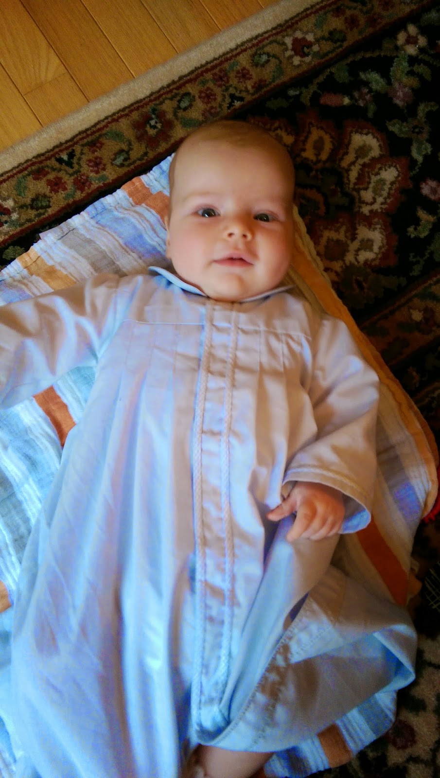 My mom made him this day gown. It would have been perfect for baptism, but we didn't get on the schedule in time...